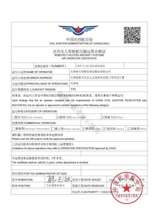 • 民用無人駕駛航空器運(yùn)營合格證